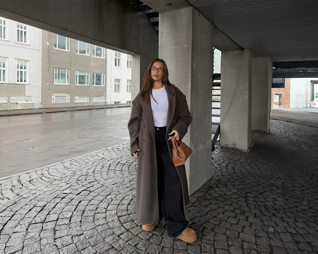 The exact coat, trousers, and accessories from the campaign — nothing more, nothing less.