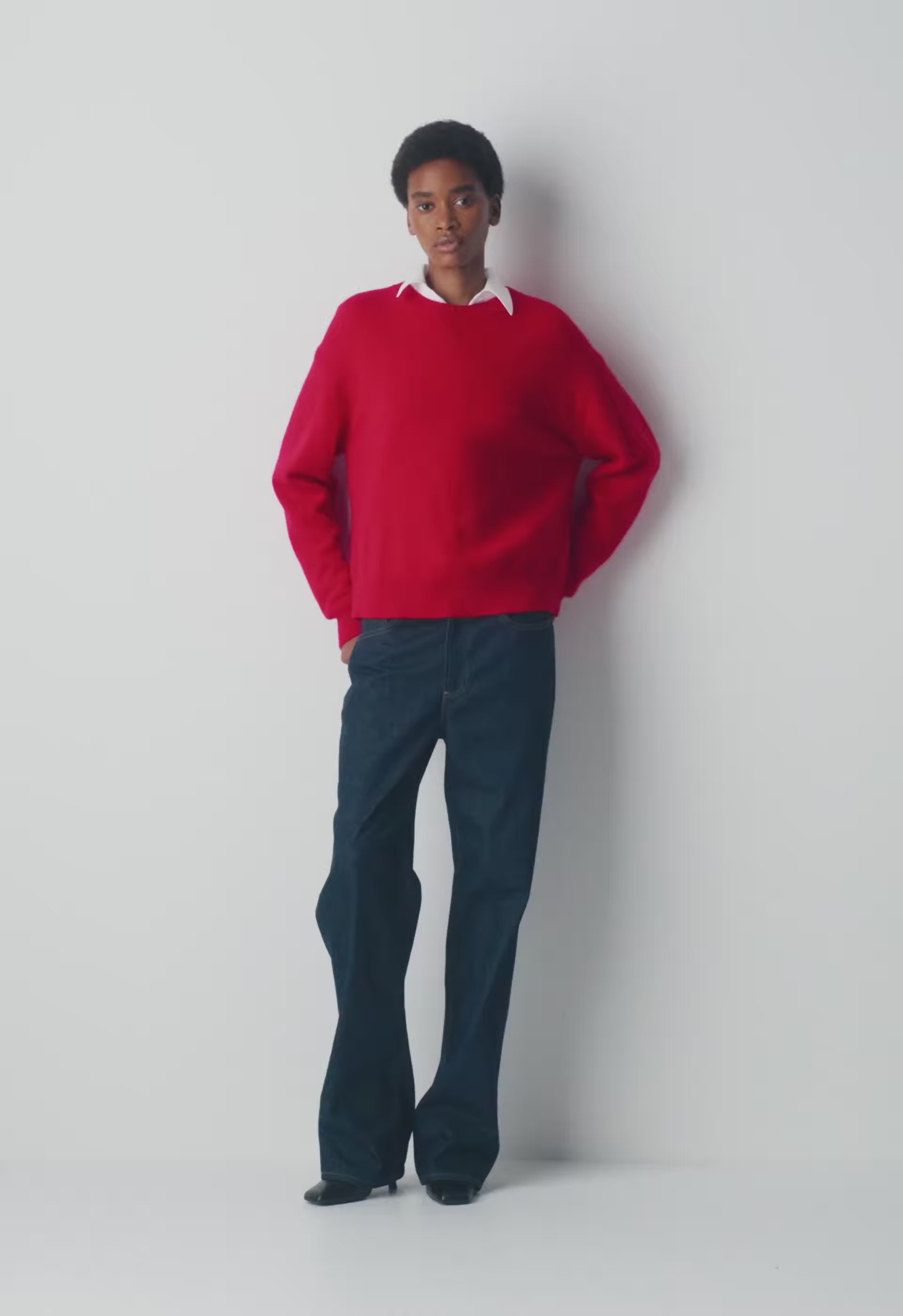 This is a fully fashioned crewneck sweater with a relaxed fit. It's knit with Aritzia’s Essential Cashmere — perfectly balanced midweight 100% cashmere yarn coveted for its signature softness and warmth. The finest available. This cashmere is verified to The Good Cashmere Standard®. It's constructed with a Jersey stitch for a soft drape and a smooth, flat feel.