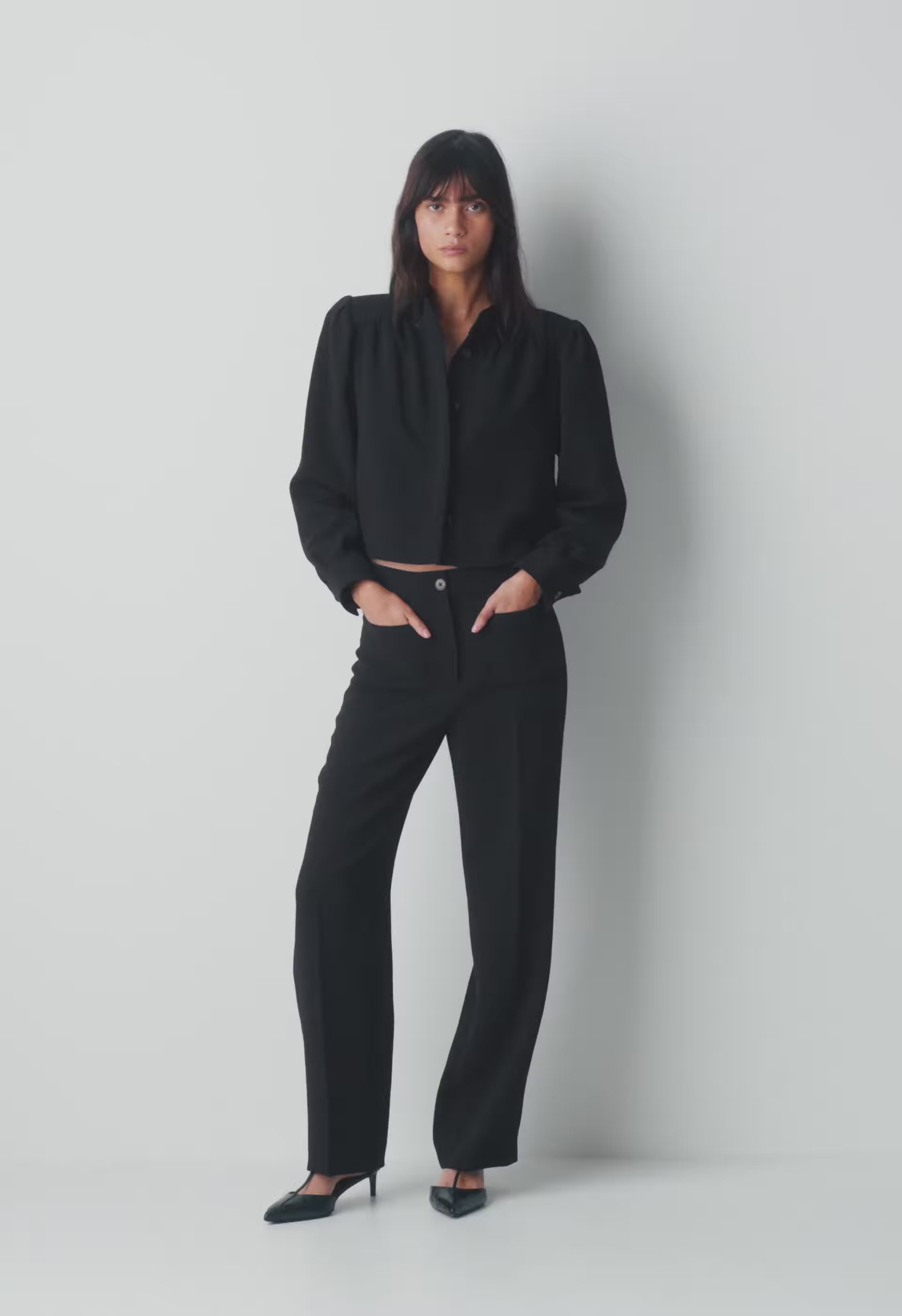 These are high-rise sailor pants with patch pockets and a slim fit. They're made with Crepette™ — our one-of-a-kind Japanese crepe fabric beloved for its subtle texture, breezy drape and the fact that it basically never wrinkles.